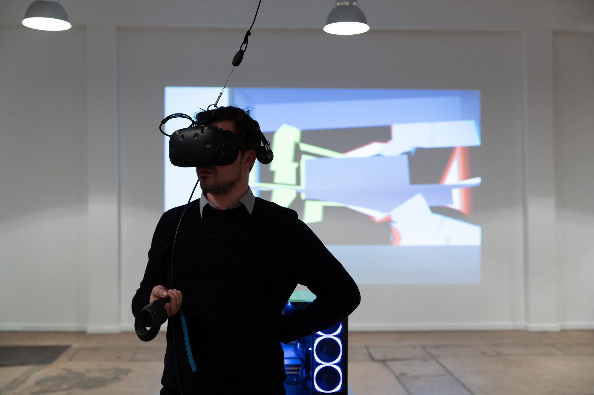 Attraverso gli occhiali VR (Vive), il visitatore entra nell'edificio virtuale della galleria per un tour immersivo autodeterminato. Con un controller ci si muove attraverso le sale della galleria, che si estendono su cinque livelli. Sui singoli livelli vengono mostrate diverse opere d'arte virtuali. Il visitatore può avvicinarsi, camminare intorno ad esse e vederle da varie angolazioni. Alcune opere possono essere vissute acusticamente e i visitatori possono anche interagire con altre. In questo progetto pionieristico, lo spazio espositivo e l'arte si combinano per formare una realtà virtuale integrata, che allo stesso tempo consente la giustapposizione diretta di singole opere d'arte virtuali, paragonabile alle tipiche situazioni espositive del mondo fisico.