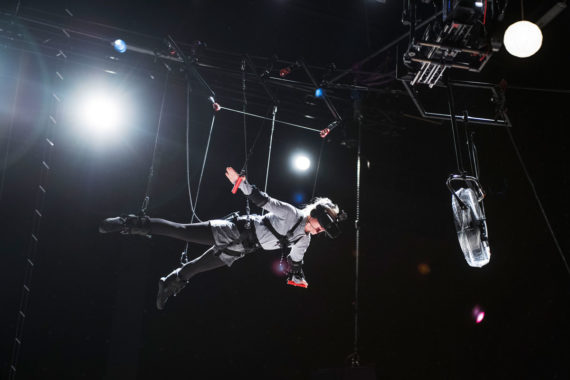 - Fallschirmspringen: Die Teilnehmer werden in die Gurten 6 Meter über den Boden eingespannt. Ein grosser Ventilator, ein Wasserspray und künstliche Baumspitzen machen das VR Erlebnis komplett.