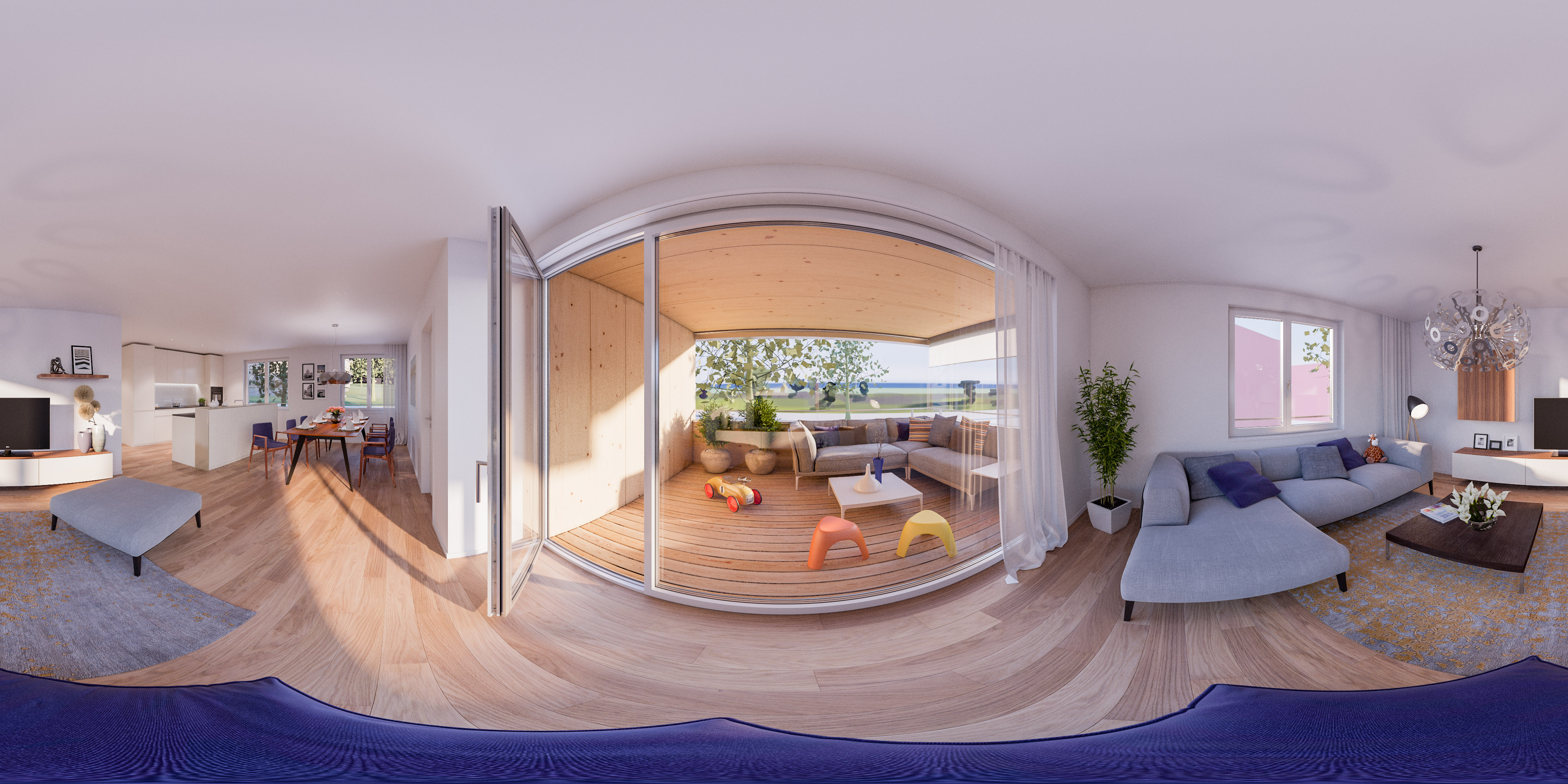 - The 3D model, which is built once, allows customers many further options, such as trying out furnishing and materialisation variants. The content only has to be created once and can also be pulled out of the VR at low cost. Thus, still images, visualisations for a homepage or presentations or other marketing tools can be developed from the VR application.