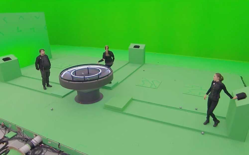 Les compétiteurs se trouvent en effet dans un studio de télévision recouvert d'un écran vert, dans lequel seuls les principaux accessoires sont réels. L'environnement virtuel est rendu par le moteur Unreal et inséré numériquement.