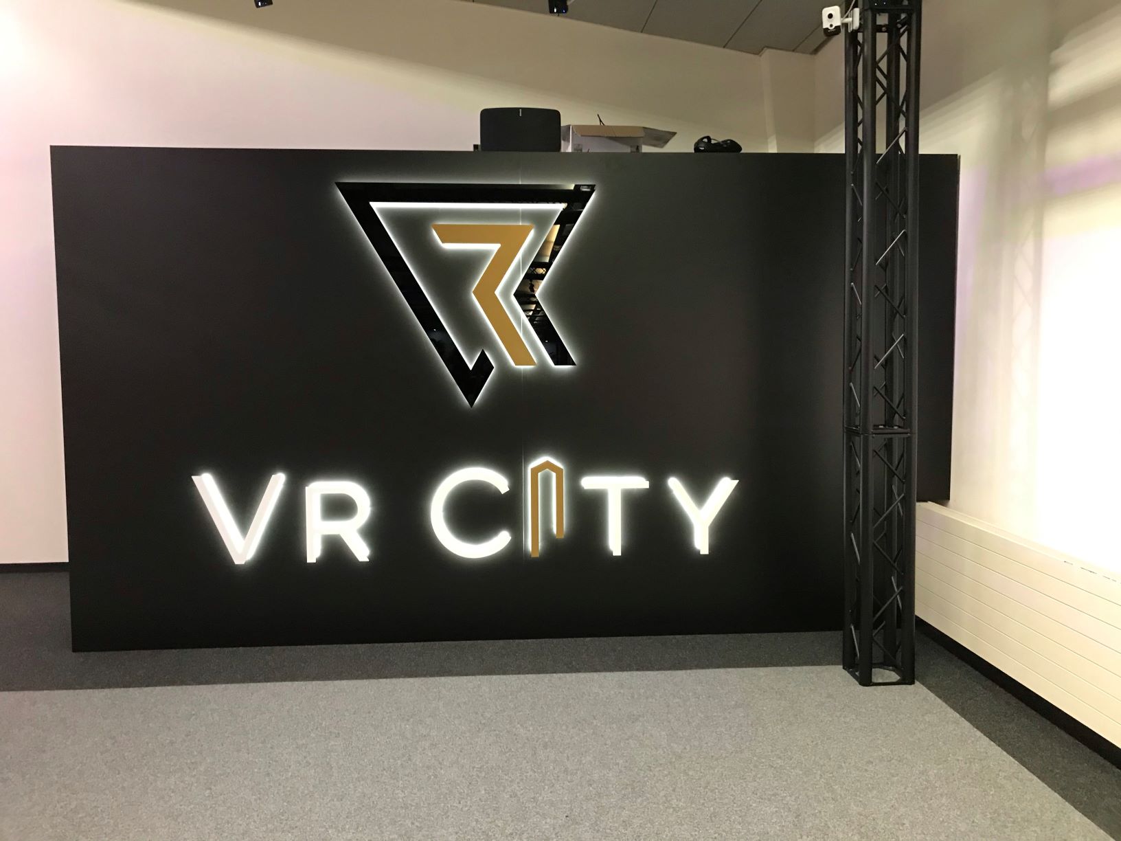 La première impression à l'intérieur était déjà très bonne : une salle spacieuse et lumineuse avec une petite et une grande arène VR, deux simulateurs de course, un bar et deux tribunes nous attendaient. Contrairement à ce que l'on pensait, peu après 20 heures, il y avait encore beaucoup de jeux. Michael Köchler, le propriétaire, nous a tout de suite accueillis et nous a tout d'abord dirigés vers le vestiaire ; il nous rejoignait dans quelques instants. Nous nous sommes volontiers débarrassés de nos vestes, car il fait certes assez chaud dans la salle et quiconque a déjà porté des lunettes VR et s'est déplacé avec sait que cela ne rafraîchit pas.
