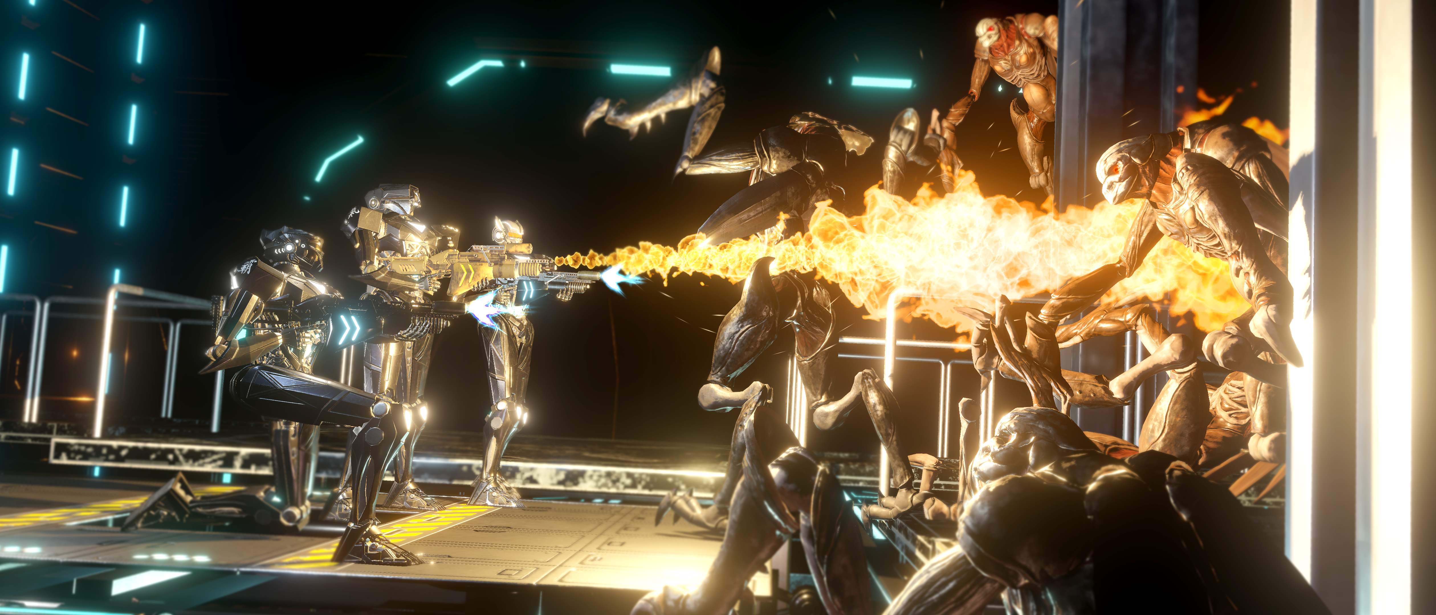 Dans ce titre, après une nouvelle introduction, nous nous trouvons dans une ville futuriste où se trouve le dernier ascenseur spatial encore en service sur Terre. Notre mission ? Sauver la Terre, c'est-à-dire l'humanité, bien sûr ! Pour cela, nous recevons des armes et, pour deux joueurs, des boucliers avec lesquels nous pouvons nous protéger, mais aussi protéger nos amis. Les armes à feu peuvent en outre être échangées dans le jeu, à condition de les découvrir et de les libérer.