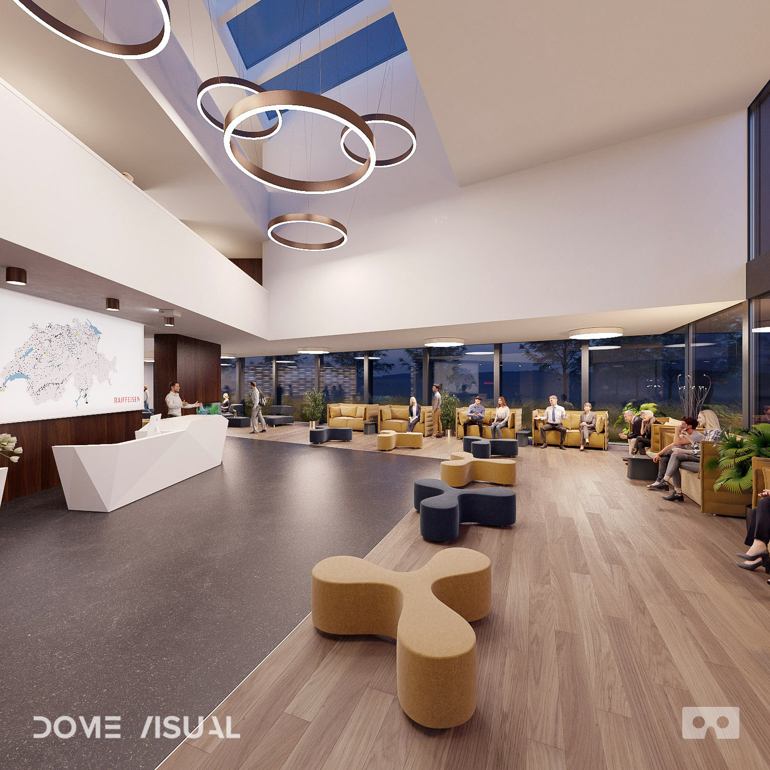 Raiffeisenbank ha pensato a come potrebbe essere la banca fisica tra dieci o vent'anni. Per poterne discutere, l'agenzia Dome Visual ha virtualizzato una banca futura e immaginaria insieme a Raiffeisenbank.