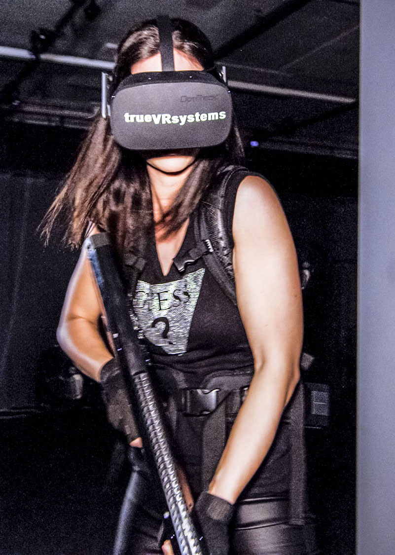 Equipaggiato con uno zaino PC, occhiali VR, un'arma con force feedback e sensori per mani e piedi, inizia l'immersione nello scenario virtuale di "Showdown". Con l'aiuto dei sensori collegati, l'intero corpo viene rappresentato come un avatar, il che rende possibile giocare in "realtà virtuale integrale". In questo modo, i singoli giocatori possono vedere le dimensioni reali del corpo e tutti i movimenti di ciascun giocatore in tempo reale.